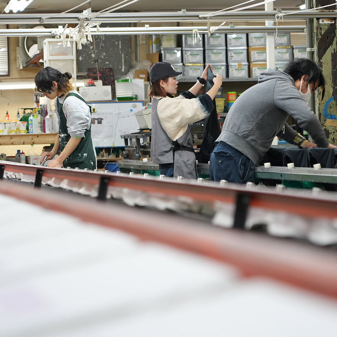 イラストレーター 南 夏希さまよりご依頼いただいたロングスリーブTシャツ。背面にインクジェットプリントの加工を施しております。濃色生地でもホワイトインクを印刷するので綺麗なフルカラーの表現が可能です。