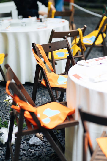 結婚式で使用される引き出物入れにカラー展開豊富なトートバッグを選んでいただきました。席ごとにカラー分けされ、華やかに新しい門出を祝うアイテムとなりました。